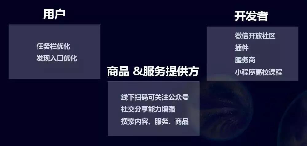 2019年发展重点:微信团队大力扶持开发者,未来将提供服务商相关的更多能力,帮助普通商户和服务商牵线搭桥。